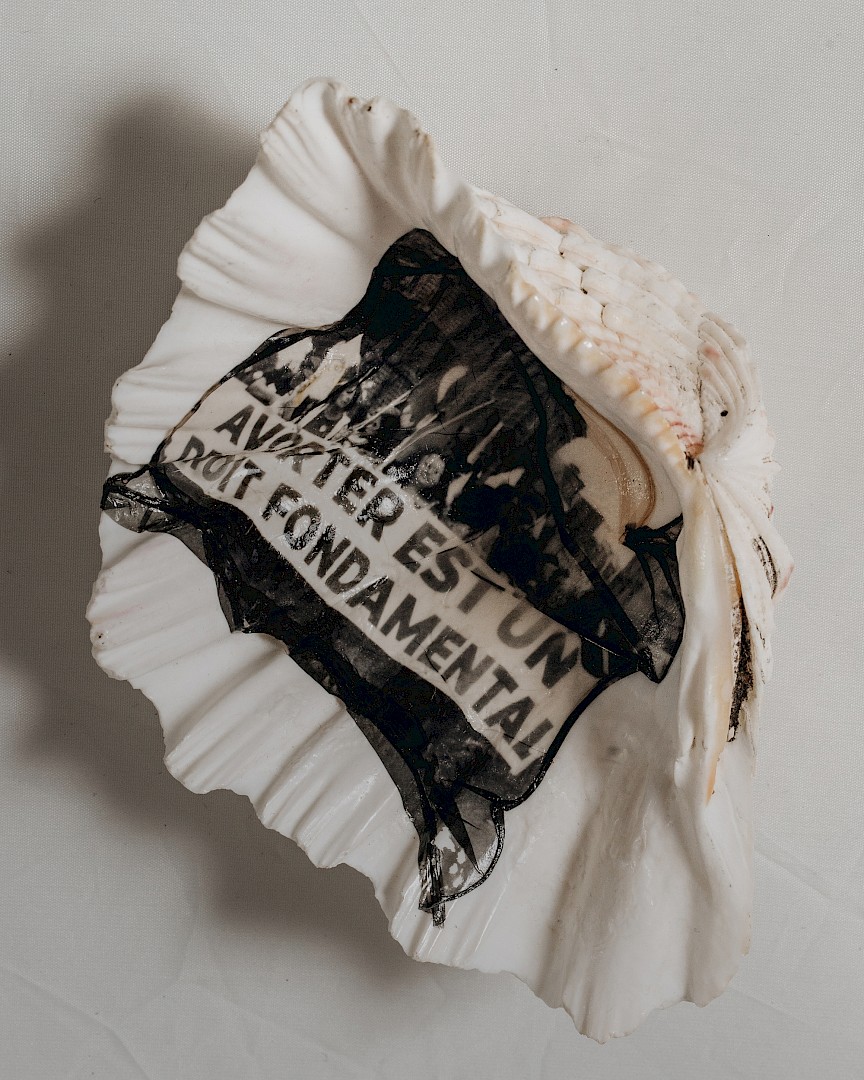 Shells have long been a recurring motif throughout art history and mythology, symbolising femininity, fecundity, and birth. Yet in our contemporary world, dominant groups increasingly make decisions on behalf of others, leaving women and gender minorities stripped of agency over matters that directly concern their own bodies.